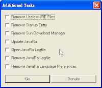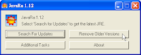 JavaRa–JRE更新移除小工具,幾個簡單的功能:檢查並安裝新版(Search For Updates)、移除不必要的多餘版本(Remove Older Versions)、移除多餘的JRE檔/移除自動啟動...(Adittional Tasks)。