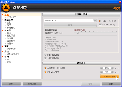 支援 Unicode 的免費音樂播放器 - AIMP2,支援的音樂格式有:MP1、MP2、MP3、MPC、MP+、AAC、AC3、OGG、FLAC、APE、WavPack、Speex、WAV、CDA、WMA、S3M、XM、MOD、IT、MO3、MTM、UMX。(阿榮)(v.hsiang 推薦)